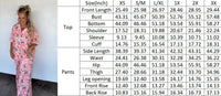 Our Luxe PJ Lounge sets are the perfect sleep set for both comfort and style. Features a button-up top with short sleeves and matching PANTS, with cute new designs that will keep you looking good while you relax. The fabric is ultra-soft, STRETCHY and lightweight for a relaxed feel. Pants have pockets and elastic waist. Feature contrast fabric on trim and collar for an extra "luxe" feel.