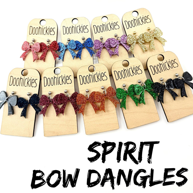 Glitter School Spirit Bow Dangle Earrings - Sports Earrings - 9 Color Options