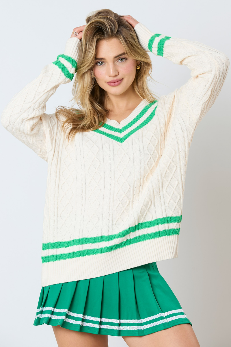 BiBi Hollow Out Yoke Detail Striped Sweater