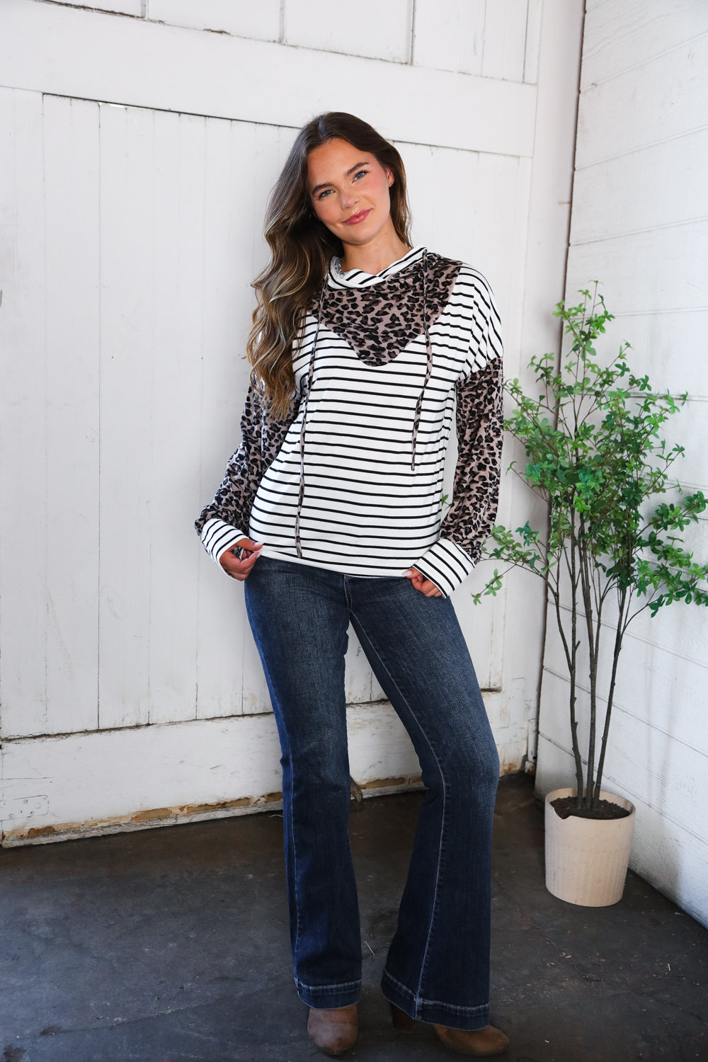 This hoodie perfectly combines our favorite animal and stripe prints. It is soft, stretchy and light weight. A great piece for running errands or casual nights out.